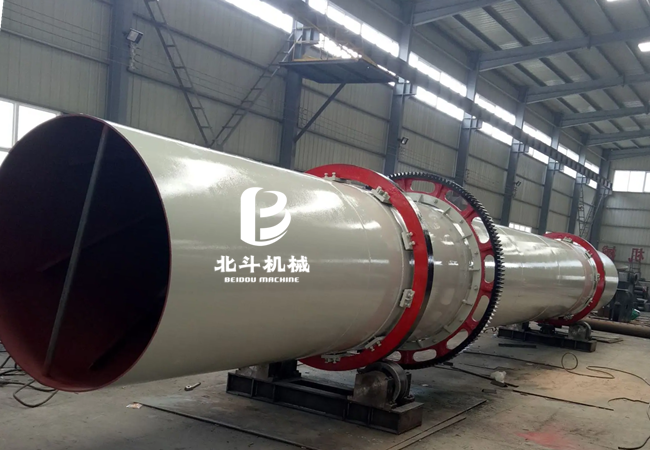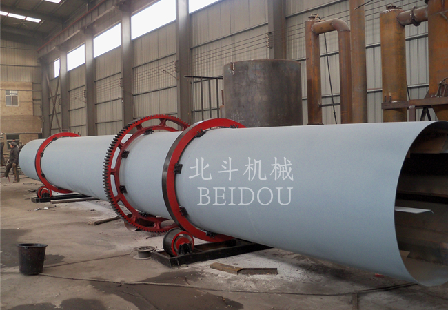 竹木烘幹機由熱風爐、電機減速機齒輪動力部分、拖輪滾圈承載部分組成。滾筒式的結構烘幹機在運行時,物料在筒內緩慢傾斜,配合內部刮板將物料打散攪勻,使物料與熱氣流的接觸表麵增大,提高幹燥速率並促進物料前進,從而達到充分烘幹的作用。